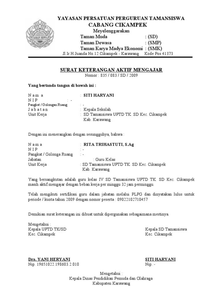 Masih aktif mengajar dengan beban kerja per minggu 32 jam perminggu. Dari pengawas tk/sd keterangan ke kabid. Doc contoh surat keterangan aktif mengajar dan sebagai. Pernyataan tertulis dari kepala sekolah ini bisa untuk guru ataupun siswa tentunya untuk suatu keperluan dari objek yang dinyatakan. Contoh surat aktif melaksanakan tugas guru in addition, it will include a picture of .